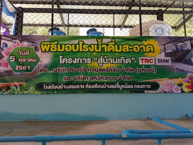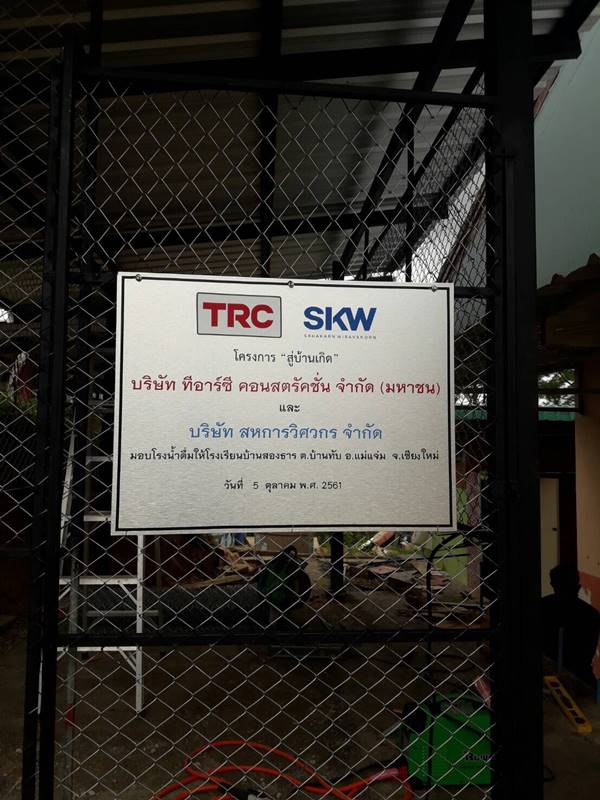 On 5 October 2018, Khun Pavita Leesakul, Vice President – Corporate Affairs Division, together with staff of TRC Construction Public Company Limited and Sahakarn Wisavakorn Company Limited handed-over water purifiers to Ban song tarn school, Amphoe Mae Chaem, Chiang Mai Province. This is one of the annual activity of “2018 CONTRIBUTION TO HOMETOWN PROJECT’’ proposed by Khun Supasiri Somkid, an employee whose homeland is located there. The objective of the project are developing employee’s homeland area and giving people to get a better quality of life according to the company policy to run the business with sustainable growth and profit returning to society.
