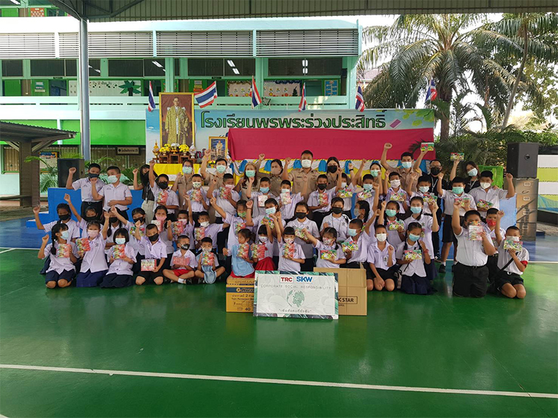 On February 8, 2021, TRC Construction Public Company Limited and Sahakarn Wisavakorn Company Limited contributed the 320 gift sets of colored pencils and crayons to the students of Wat Phon Phra Ruang Prasit school to encourage the development of skill and imagination of children who are in the age of creativity.