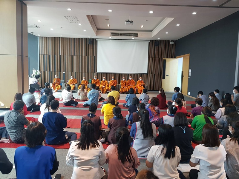 Executives and employees of TRC Construction Public Company Limited and Sahakarn Wisavakorn Company Limited joined in the merit making by offering dried foods to the 9 monks from Phon Phra Ruang Prasit Temple on the occasion of Makha Bucha Day on the 26th February 2021 at TRC Building, 2nd Floor.