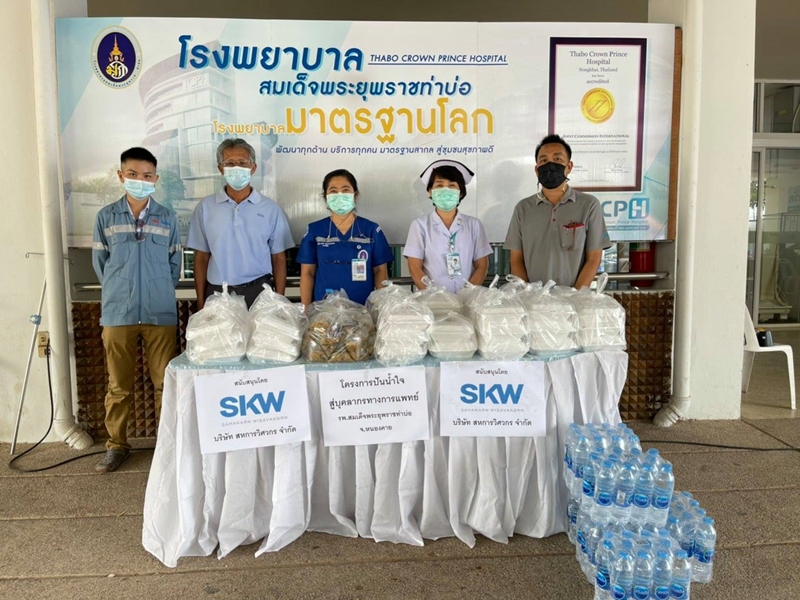 On May 25, 2021, Sahakarn Wisavakorn Co., Ltd. handed out 50 sets of rice boxes and drinking water to the Thabo Crown Prince Hospital to encourage the frontline staff who has been working during the Covid-19 pandemic. Currently spreading the COVID 19.